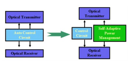 光模塊主要通過采用自適應(yīng)電源管理技術(shù),對模塊關(guān)鍵功耗芯片的工作狀態(tài)進(jìn)行動態(tài)調(diào)節(jié),能有效降低處于待機(jī)狀態(tài)模塊的功耗最大可達(dá)60%。