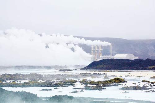 冰島國際機場南邊20公里的斯瓦塔森吉熱水供應(yīng)發(fā)電廠,用1000米深地?zé)峋母邷卣羝瑢⒐┡O(shè)備中的涼水加熱供應(yīng)給周圍的居民。