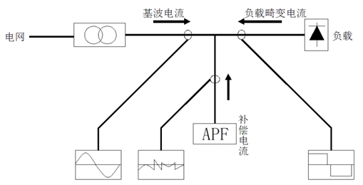 ANAPF系列有源電力濾波裝置,以并聯(lián)方式接入電網(wǎng),通過實時檢測負載的諧波和無功分量,采用PWM變流技術(shù),從變流器中產(chǎn)生一個和當前諧波分量和無功分量對應(yīng)的反向分量并實時注入電力系統(tǒng),從而實現(xiàn)諧波治理和無功補償。