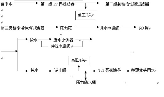 二、凈道直飲水(RO)機(jī)的工藝流程構(gòu)造圖