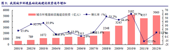 我國環(huán)境污染治理投資總額包括三部分:城市環(huán)境基礎設施建設投資、工業(yè)污染污染治理投資、“三同時”建設項目環(huán)保投資。城市環(huán)境基礎設施建設投資包括:燃氣、集中供熱、排水、園林綠化、市容環(huán)境衛(wèi)生。工業(yè)污染源治理投資包括:治理廢水、廢氣、固體廢物、噪聲、其它。“三同時”建設項目環(huán)保投資包括:新建、擴建、技改,其中主要包括三廢治理。