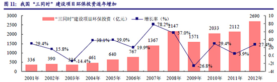 市場和商業(yè)模式是我們研究的基礎。三中全會強調(diào)用制度保護生態(tài)環(huán)境。我們預計細化的政策將會陸續(xù)出臺。政策引導將激發(fā)環(huán)保潛在需求,創(chuàng)造新的市場,2014 年環(huán)保投資將明顯增長。我國經(jīng)濟發(fā)展已經(jīng)進入工業(yè)化中后期,傳統(tǒng)高能耗、高污染的生產(chǎn)模式已經(jīng)不能適應可持續(xù)發(fā)展的要求,節(jié)能減排是我國經(jīng)濟發(fā)展的必然選擇,也是環(huán)保行業(yè)發(fā)展的原始驅(qū)動力。從國外經(jīng)驗來看,政府對環(huán)保的重視和大規(guī)模投入一般發(fā)生在工業(yè)化后期。這個階段經(jīng)濟發(fā)展進入平穩(wěn)階段,居民生活質(zhì)量提升和環(huán)境改善逐步成為社會關注的焦點。政府工作中心逐步由保經(jīng)濟增長轉(zhuǎn)向關注民生,其中環(huán)境保護是重中之重。我們預測“十二五”我國環(huán)境污染治理投資總額年均增長率在20%。