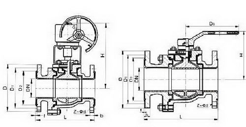 三、Q341F4蝸輪襯氟球閥主要外形尺寸表