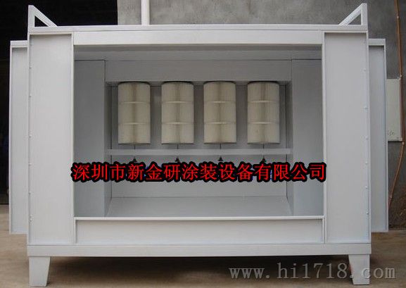 新金研牌噴粉房-噴粉室,塑粉回收機(jī)本產(chǎn)品工作時(shí),啟動(dòng)風(fēng)機(jī),噴粉柜內(nèi)未被工件吸附懸浮于空氣中的游離粉末被吸入回收柜內(nèi),此時(shí),95%以上的粉末被紙濾芯擋住存于皺折中,約有5%的粉末隨風(fēng)經(jīng)小孔進(jìn)入上箱體中,幾秒鐘脈沖反吹一次的機(jī)構(gòu)堵住氣流不能上升,壓縮空氣經(jīng)電磁閥進(jìn)入管內(nèi)對(duì)濾芯外壁上的粉末轉(zhuǎn)動(dòng)著進(jìn)行反吹,使它們經(jīng)斜斗落入小車(chē)內(nèi)泵再回用。而上箱中的空氣由軟管經(jīng)過(guò)風(fēng)機(jī)進(jìn)入細(xì)粉回收箱,潔凈空氣由布袋網(wǎng)排出,5%的細(xì)粉收集于箱內(nèi)待再處理。
