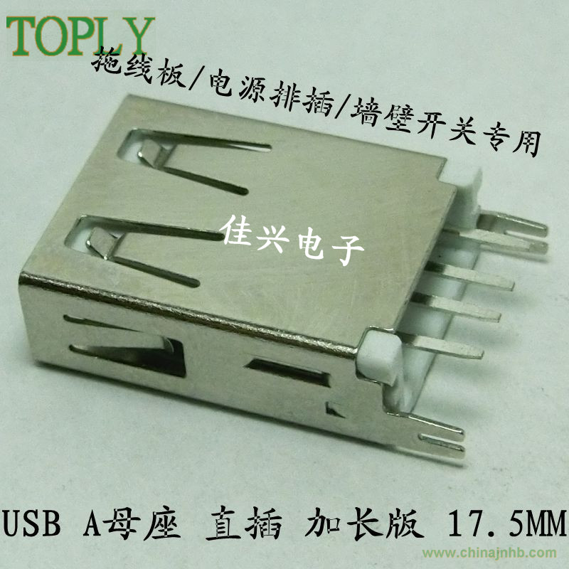 USB♀母座長體立式♂直插20.5、17.5加長USB插座
