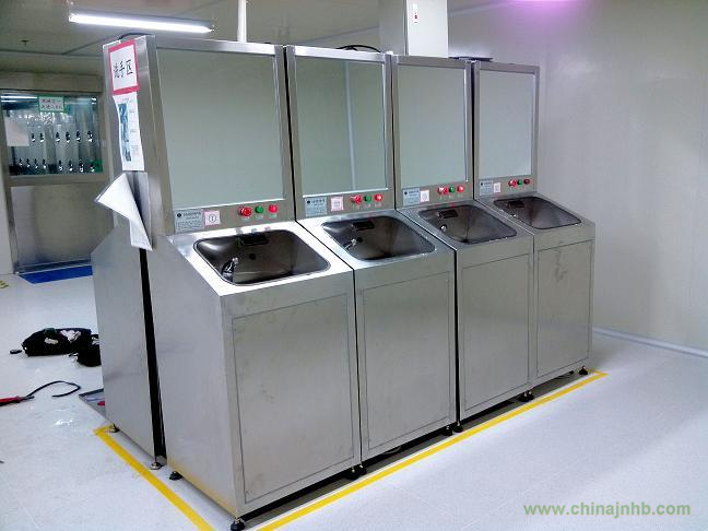 全自動洗手烘干機為進入潔凈室之前必要動作。主要功能為提供潔凈水,確保將作業(yè)人員雙手清洗潔凈;由經(jīng)過高效濾網(wǎng)過濾、環(huán)保加熱器加熱后的高速氣流將手烘干,避免作業(yè)人員污染無塵服或?qū)⑽廴驹磶霟o塵室,造成管制上的疏失。