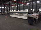當(dāng)壓濾機(jī)壓緊后,即可進(jìn)行進(jìn)料操作:開啟進(jìn)料泵,并緩慢開啟進(jìn)料閥門,進(jìn)料壓力逐漸升高至正常壓力。這時觀察壓濾機(jī)出液情況和濾板間的滲漏情況,過濾一段時間后壓濾機(jī)出液孔出液量逐漸減少,這時說明濾室內(nèi)濾渣正在逐漸充滿,當(dāng)出液口不出液或只有很少量液體時,證明濾室內(nèi)濾渣已經(jīng)完全充滿形成濾餅。如需要對濾餅進(jìn)洗滌或風(fēng)干操作,即可隨后進(jìn)行,如不需要洗滌或風(fēng)干操作即可進(jìn)行卸餅操作。