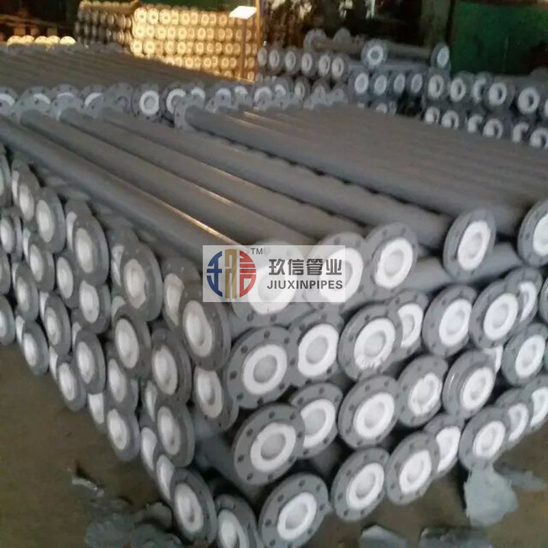 鋼襯聚四氟乙烯管質(zhì)量可靠、技術(shù)先進,被廣泛應(yīng)用于化工、電力、冶煉、制藥、食品、環(huán)保、電鍍等領(lǐng)域,可通過各種濃度的酸、堿、鹽等,是目前耐腐蝕性能朂好的防腐管。鋼襯聚四氟乙烯管既具有鋼管的強度,又具有塑料管耐腐蝕的特性,是輸送酸、堿、鹽、有腐蝕性氣體等介質(zhì)的理想管道。但是,如果在施工過程中處理不當(dāng),管內(nèi)的涂塑層遭到破壞,則會喪失其優(yōu)良的防腐蝕性能。故當(dāng)系統(tǒng)工作壓力小于等于1.0Mpa時,宜采用涂塑無縫鋼管法蘭連接或溝槽式連接,管道的配件也為無縫鋼管涂塑管件。