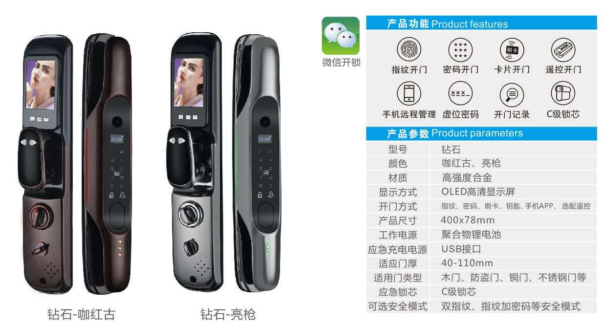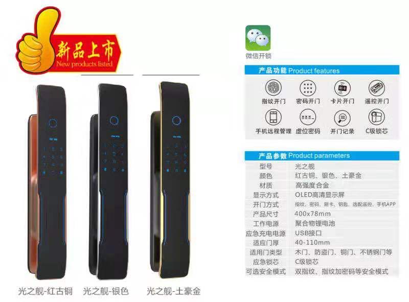 布勞恩智能鎖、密碼鎖、指紋鎖、高端、大氣、上檔次、多重安全防護、方便、舒適、快捷、更智能、微信APP遠程操作管理、遙控、鑰匙、貓眼、密碼、指紋、IC卡、C級鎖芯、開門記錄、虛擬密碼,聚合物鋰電池、UBC插口、OLED高清顯示屏、高強度合金、紅古銅、銀色、土豪金,適用于木門、防盜門、銅門、不銹鋼門、大門、房間門
