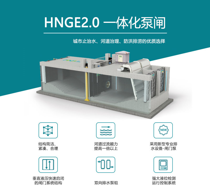 一體化泵閘將閘門與水泵合二為一,無需建立獨(dú)立泵站,減少占地面積。一體化泵閘配置內(nèi)外和雙向液位監(jiān)測(cè)系統(tǒng),根據(jù)實(shí)際情況控制閘門與泵的啟閉。一體化泵閘總系統(tǒng)控制中心,使機(jī)械系統(tǒng)、液壓系統(tǒng)、電氣系統(tǒng)、監(jiān)測(cè)系統(tǒng),數(shù)據(jù)集成至云平臺(tái),使用戶、廠家、代理商、現(xiàn)場(chǎng)、可實(shí)現(xiàn)實(shí)時(shí)監(jiān)控,查看數(shù)據(jù)。一體化泵閘還可配置軸流泵或閘門泵,閘門泵可進(jìn)行雙向排水,使得排水補(bǔ)水共存,應(yīng)用于防洪排澇、城市除澇,河道治理、黑臭水體治理,內(nèi)河補(bǔ)水等領(lǐng)域。是城市治水、河道治理、防洪排澇不錯(cuò)的選擇。